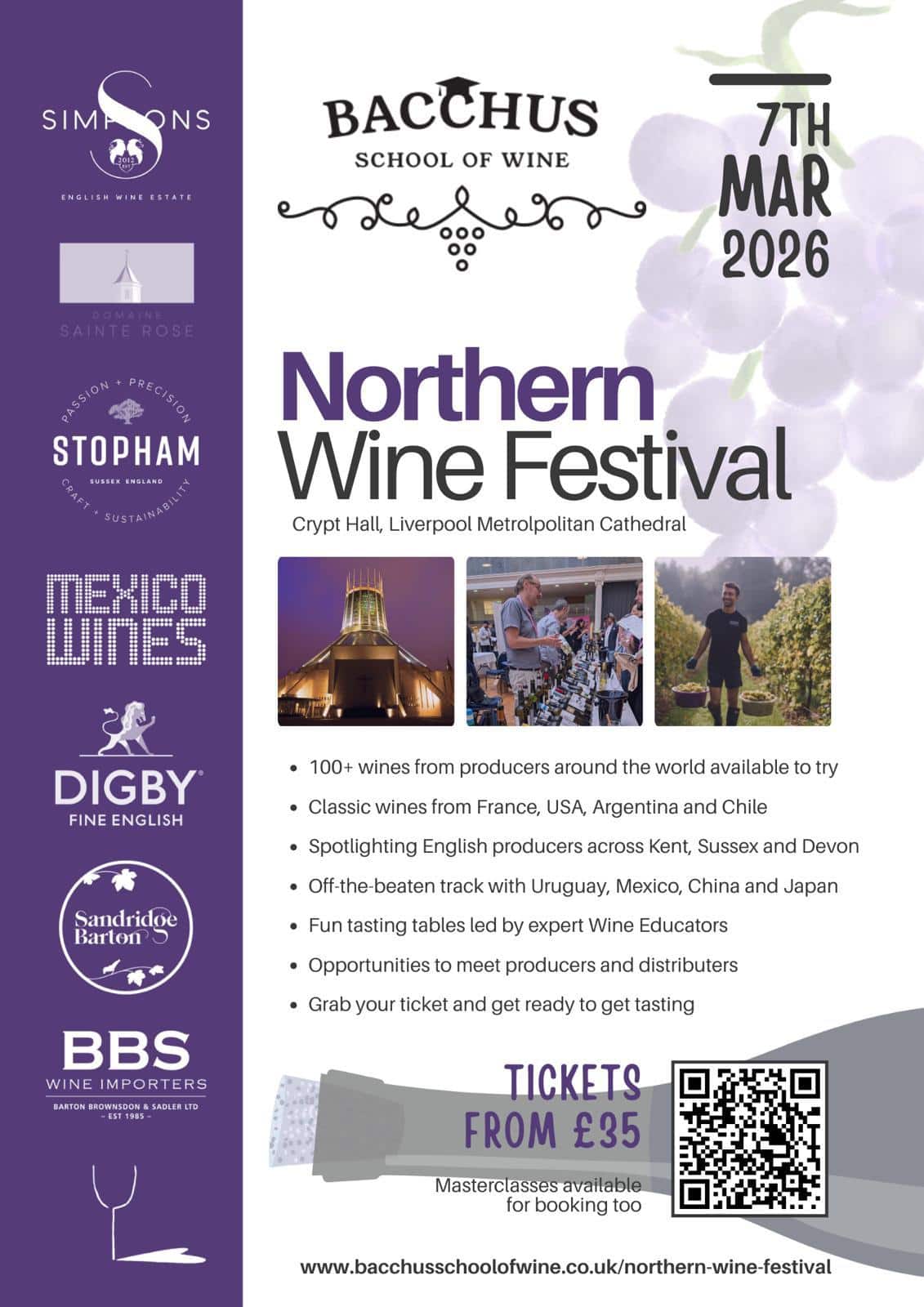 Please note, should you purchase a Standard Admission ticket only and then wish to add a discounted Tasting Card or a Masterclass at a later stage, this is possible (just not online). Please contact Johnathan directly via nwf@bacchuswinetasting.co.uk with your request and he will amend your booking accordingly. For processing, this must be done before 28th February 2026.